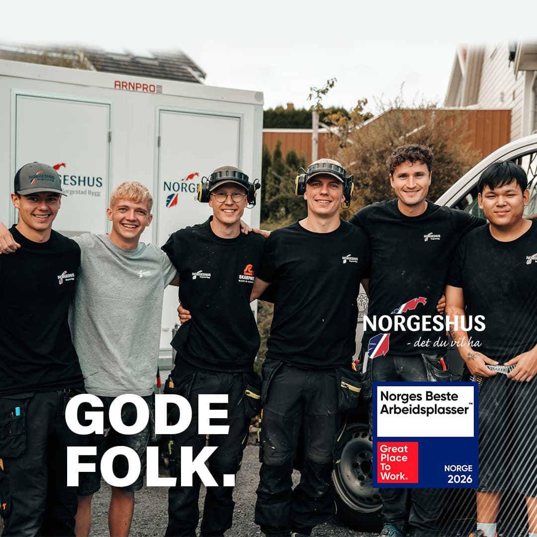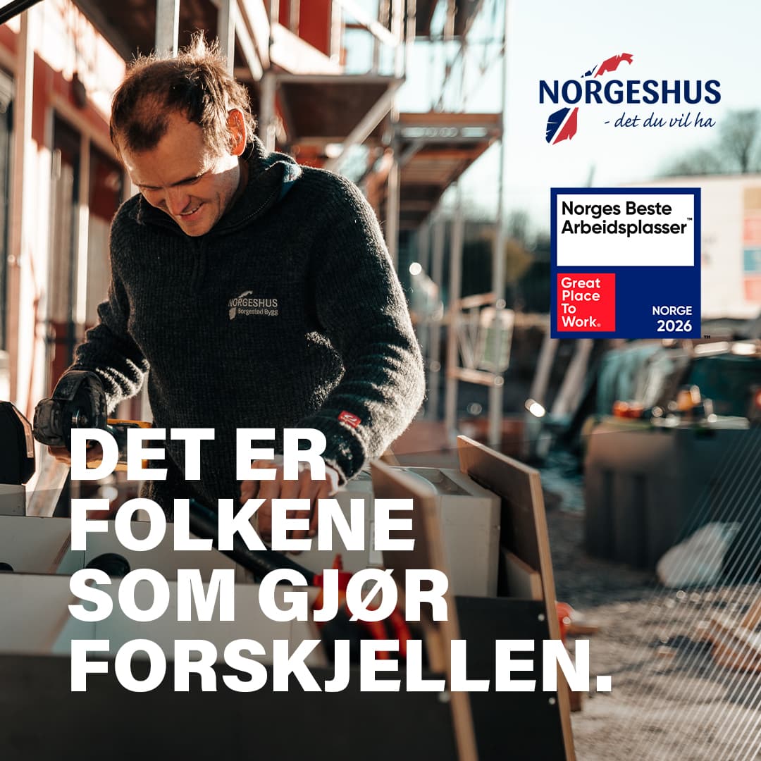 Å bygge bolig er et av livets viktigste valg. I en tid preget av usikkerhet er det viktigere enn noen gang å velge hvem du bygger med. Hos Norgeshus mener vi at gode hjem starter med gode folk. Derfor har vi over tid satset målrettet på et godt arbeidsmiljø – noe som har gjort oss til en av Norges beste arbeidsplasser, kåret av Great Place to Work.